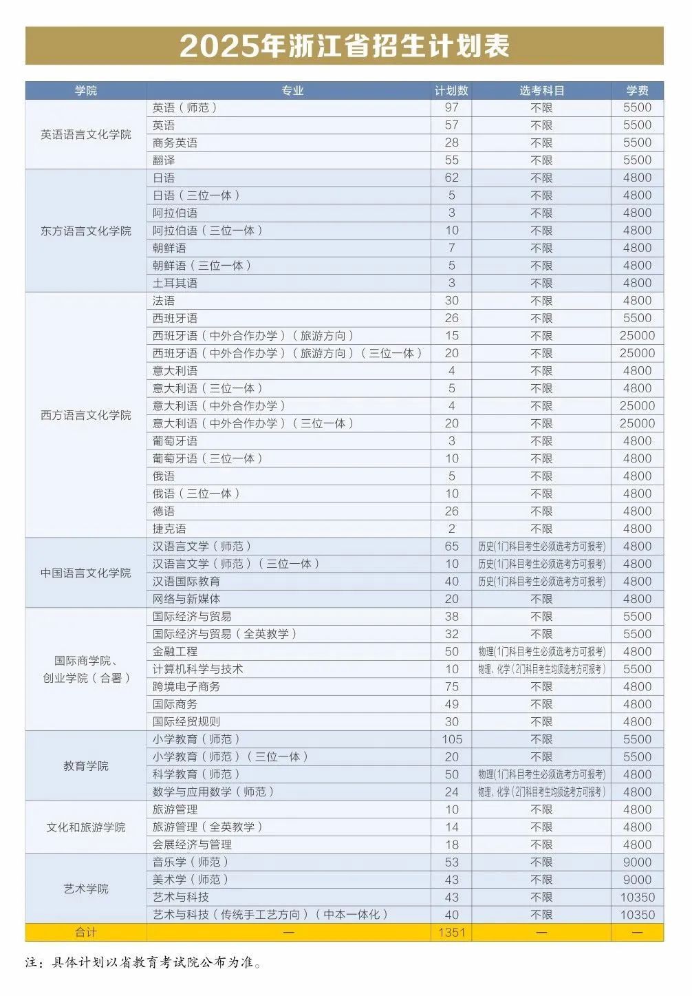 面向全国17个省(自治区)招生,普通本科招生计划2280人。其中,浙江省招生计划1351人,省外招生计划929人。