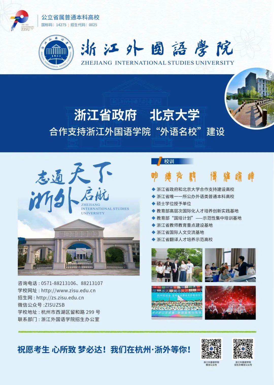 以培养具有家国情怀国际视野,能娴熟使用外语,数智能力强,能担当文明互鉴和人文交流之大任,能讲好中国故事、浙江故事的高端国际化应用型人才为目标,把立德树人贯穿人才培养全过程。面向全国17个省(自治区)招生,全日制在校生规模9800余人。
