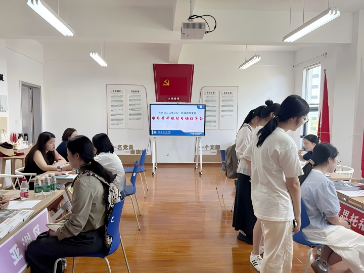 70周年校庆,英文学院特别推出“名企进校园”系列宣讲会。7月2日下午,新通教育集团国际升学规划专场指导会于融A316顺利举行。院长邢富坤、副院长郑淑贞、就业负责人吴小慧在现场与企业代表深入交流。