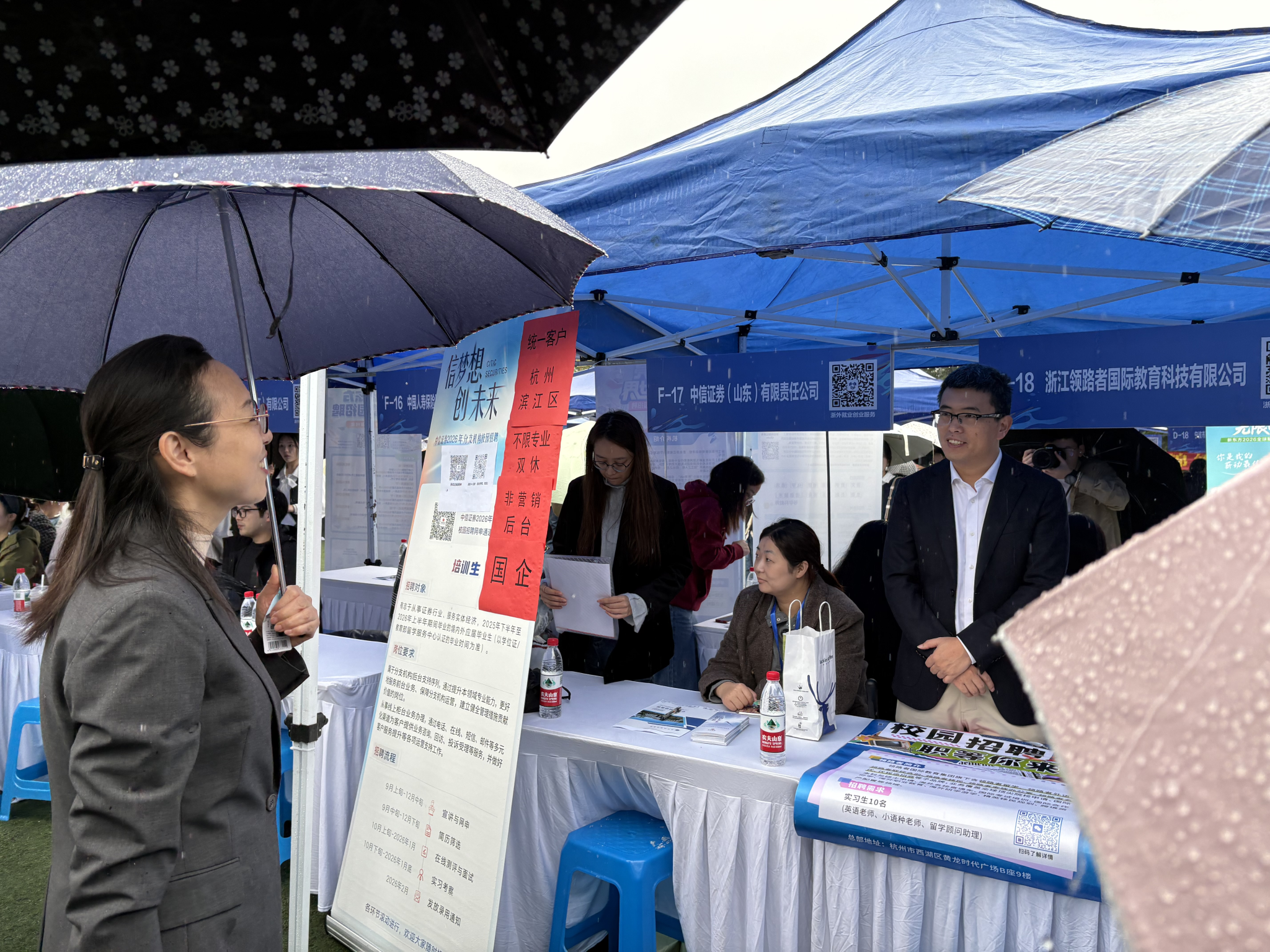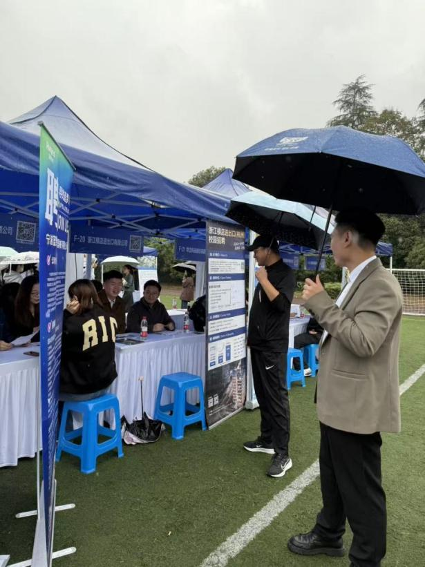 风雨交加,却未能阻挡学子们追寻梦想的脚步。一把把雨伞下,是坚定的目光和从容的步伐。此次招聘会的成功举办,不仅为毕业生提供了丰富的就业与实习机会,也为学院优化人才培养方案提供了重要参考。英文学院将以本次招聘会为契机,继续深化校企合作,拓展就业渠道,助力学子迈向更加广阔的职业舞台。