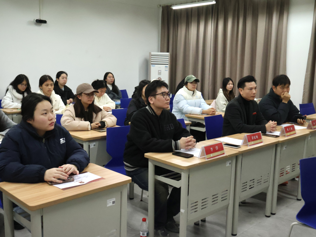 11月27日晚,英文学院“强鹰计划”训练营(雅思公益专项)结营仪式在融B104举行。新通教育杭州外语高校市场总监黄庭翔、市场代表李洋受邀出席,英文学院党委副书记、纪委书记欧万彬,2026届就业负责人吴小慧及全体训练营成员共同参与,学工办负责人顾蒙主持。