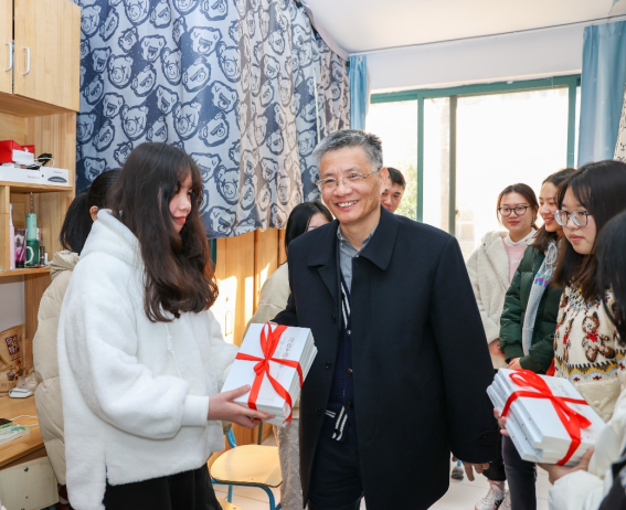 “同学们,新年好!”宣勇书记热情地与同学们握手,致以亲切的问候。“最近大家复习得如何?”“你的家乡是自贡吗?我曾去过那里,当地特色灯会给我留下了很深的印象!”“学文征明书法是很有难度的,小楷强调稳定性。”“吉他弹唱很酷,有机会要上台展示自己。”宣书记与同学们围坐,从学习生活、兴趣爱好、家乡习俗等方面与同学们进行亲切的交谈。同学们踊跃向宣书记讲述着自己来到国产av