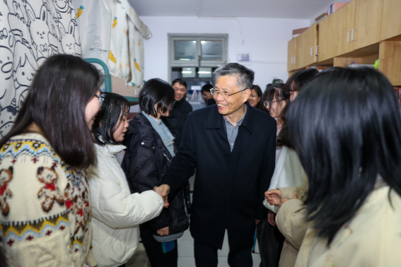 新生寝室走访,看望、关怀正在复习备考的2021级新生。学院党总支书记毛立峰、副书记张豫晋和辅导员顾蒙一同走访。