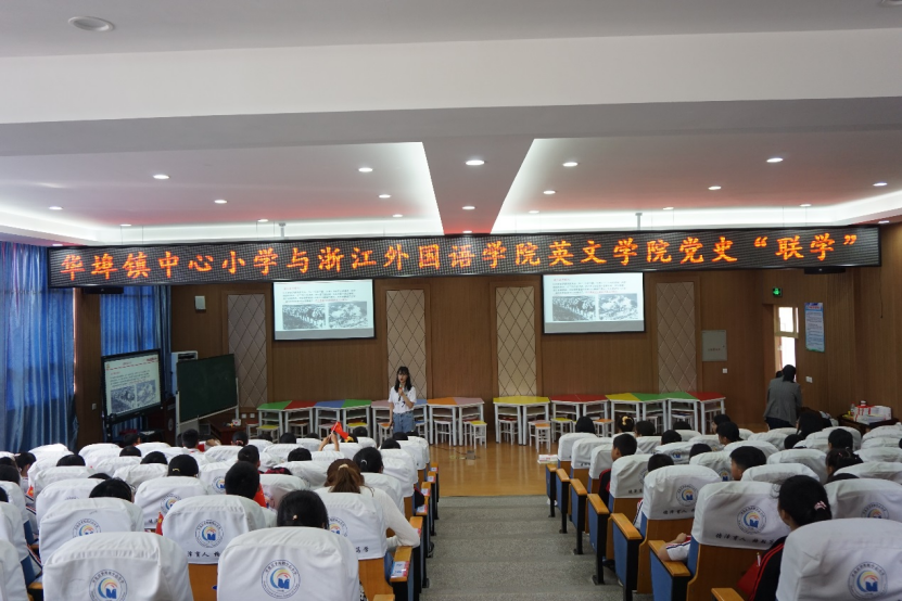 同时,由英文学院师生党员组建的“红色宣讲团”走进华埠镇中心小学一起开展“讲革命故事、溯红色记忆、做时代新人”的党史“联学”。“红色宣讲团”为华埠镇小学的孩子们带来了开化的红色英雄故事,华埠镇小学的同学们也为大学生朋友们展示了华埠镇小学的地下党员的感人故事,之后,在大姐姐大带领下,大家一起共读共学了英文版《共产党宣言》,向华埠镇小学捐献了精心准备的红色书籍,在一曲《没有共产党,就没有新中国》的合唱声中,在场的同学们都意犹未尽,华埠镇中心小学的同学们围在一起,纷纷表达了希望未来能考取国产av