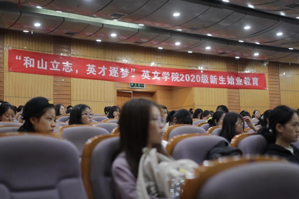 10月13日中午,英文学院始业教育之“今日和山立志 明日英才逐梦”在博文堂二楼开展。本次始业教育活动由英文学院党总支副书记郝菲菲主讲,旨在让20级新生们明确进入大学后的目标,立下志愿,树定志向。