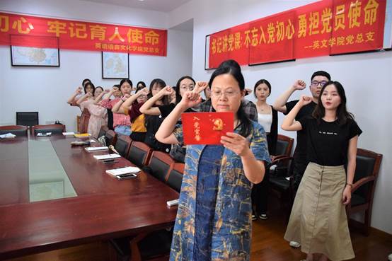 为庆祝中国共产党成立99周年,以实际行动践行初心使命,英文学院党总支举行庆祝中国共产党成立99周年纪念活动。纪念活动由书记讲党课、入党誓词宣誓、观看专题纪录片等组成。英文学院党总支负责人、英文学院学生党支部书记与全体新党员参与此次活动。