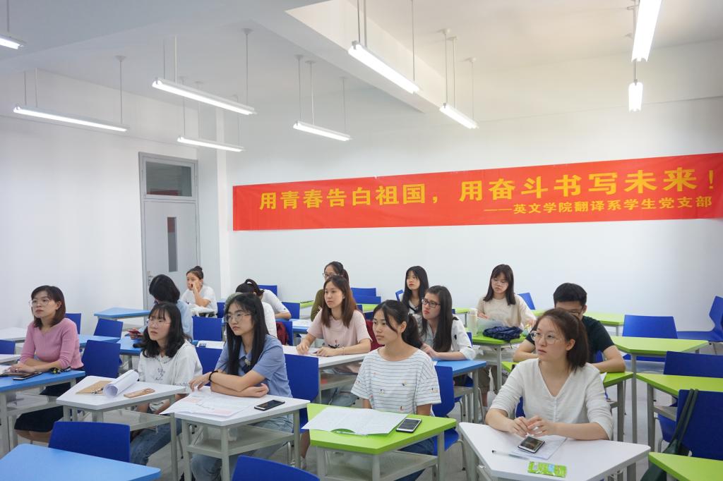为庆祝中华人民共和国成立70周年,激励学生党员增强家国情怀,激发学生党员的责任担当。近日,英文学院翻译系学生党支部开展“青春告白祖国 奋斗书写未来”主题党日活动,展示新时代青年与国家共奋进的爱国情和报国志。