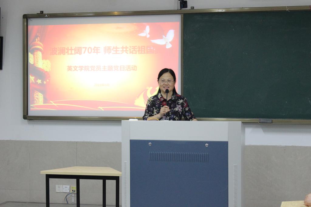 活动中,教工党员回顾了新中国成立70年来所取得的伟大成就,畅谈了新中国成立70年来的巨大变化,并分别结合自身成长和奋斗经历,从为什么要学习、怎样实现自己的人生梦想等交流认识和体会。学生党员们则表示要立鸿鹄志,做奋斗者,用实际行动展现当代大学生的时代风采,爱浙外,爱祖国。英文学院党总支书记周彩英充分肯定了本次主题党日活动的意义,她强调,今年是新中国成立70周年,希望教工党员不忘初心,做有温度的教师,学生党员能树立目标,做好自己,用实际行动来爱校、爱国。