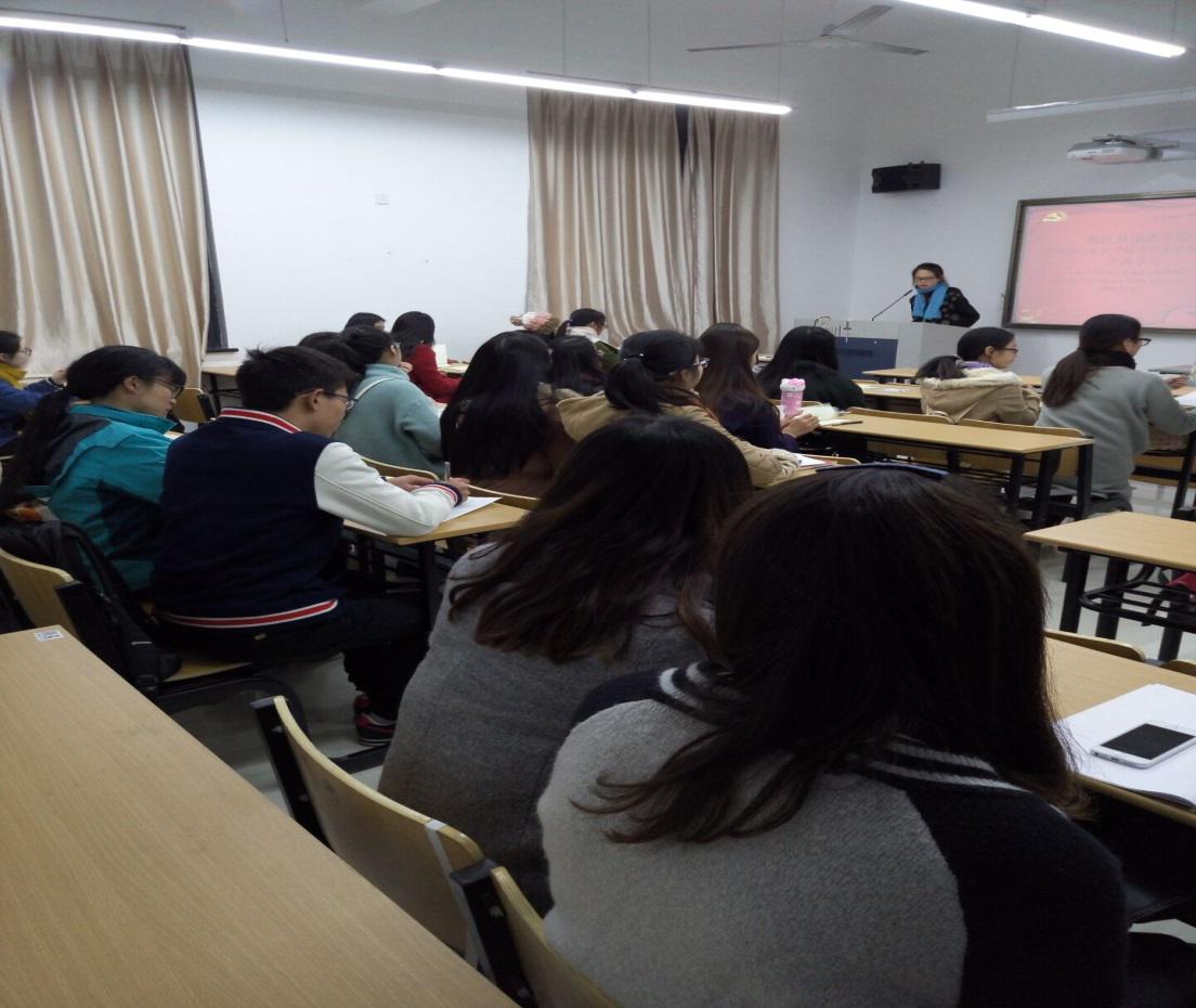 英语系学生党支部在小和山校区教学楼209教室组织专题学习会。学习《中国共产党廉洁自律准则》和《中国共产党纪律处分条例》,传达中共十八届五中全会精神。