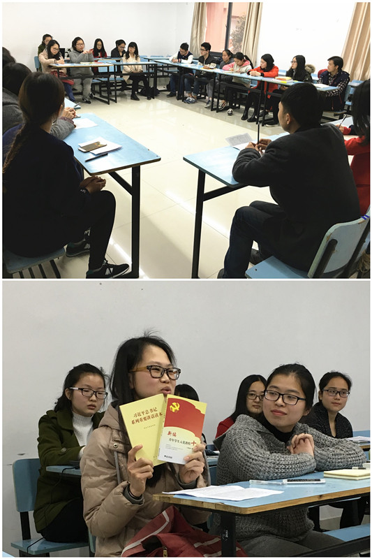 为进一步认真贯彻落实中共中央关于在全体党员中开展“学党章党规、学系列讲话,做合格党员”的工作要求,积极响应深入学习习近平总书记系列重要讲话精神,推动全面从严治党向基层延伸的号召,近日,英文学院学生党支部集中开展了“两学一做”。