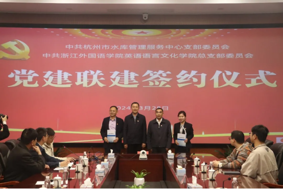 为进一步推进党建优势互补,激发党建新活力,3月28日,英文学院党总支与杭州市水库中心党支部举行党建联建签约仪式暨“世界水日”“中国水周”主题活动,校党委副书记严齐斌出席活动。杭州市林业水利局二级巡视员胡洪志、市水库中心党支部副书记朱航威、学院党总支书记田俊杰以及40余名师生代表参加活动。