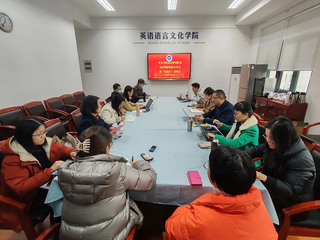 近日,英文学院党政领导班子、新任教学主管、科研主管以及学院教学督导等一行10余人赴北京大学外国语学院、北京语言大学信息科学学院等单位交流学习,深入课程听课,开展党建、科研、教学等座谈交流。12月13日,学院召开党建“E+”圆桌派座谈会,进一步分享交流了此次北京调研学习之行的经验和感受。学院党政领导班子全体成员,各基层组织的学科专业负责人、教学主管、科研主管等参加了分享会。