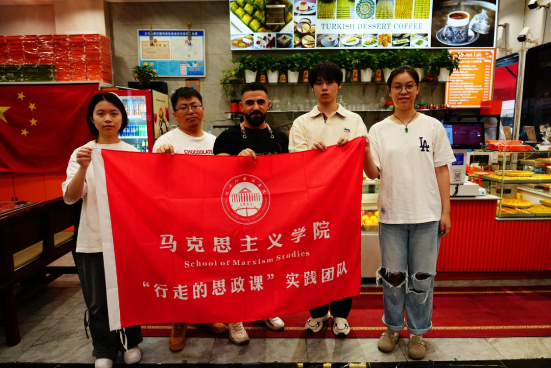 推开Sweet Life的店门,中国国旗与店内橙色相映。店内的土耳其面点师巴勒什热情招呼:“尝尝改良版巴克拉瓦!”中国经理王泽辉详细介绍了小店因店主阿布杜拉因爱中国功夫携手艺扎根义乌的过程,讲述中满含对中华文化的深情。学生领队向店经理说明来意,希望以甜品为切口探索“土耳其·小商品城”的文明共振,经理激动道:“甜蜜需要分享,希望通过你们的视频,能让更多人喜欢上它们。”