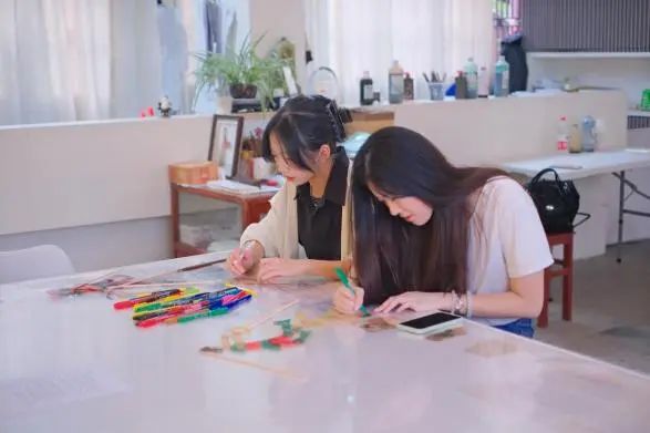 在互动体验中,成员们深入感受非遗技艺的精妙。皮影戏后台,大家亲手操控影人、绘制影人,体验影偶制作的细致工序;蓝印花布工坊里,成员们沉浸式学习刷色、套印,参与彩拷技艺实践,在靛蓝与白布的交融中,体会传统技艺的高门槛与高要求。