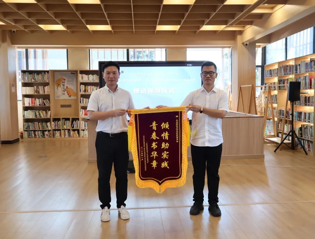 党委副书记、纪委书记欧万彬代表实践队向共青团余杭区委员会赠送锦旗。