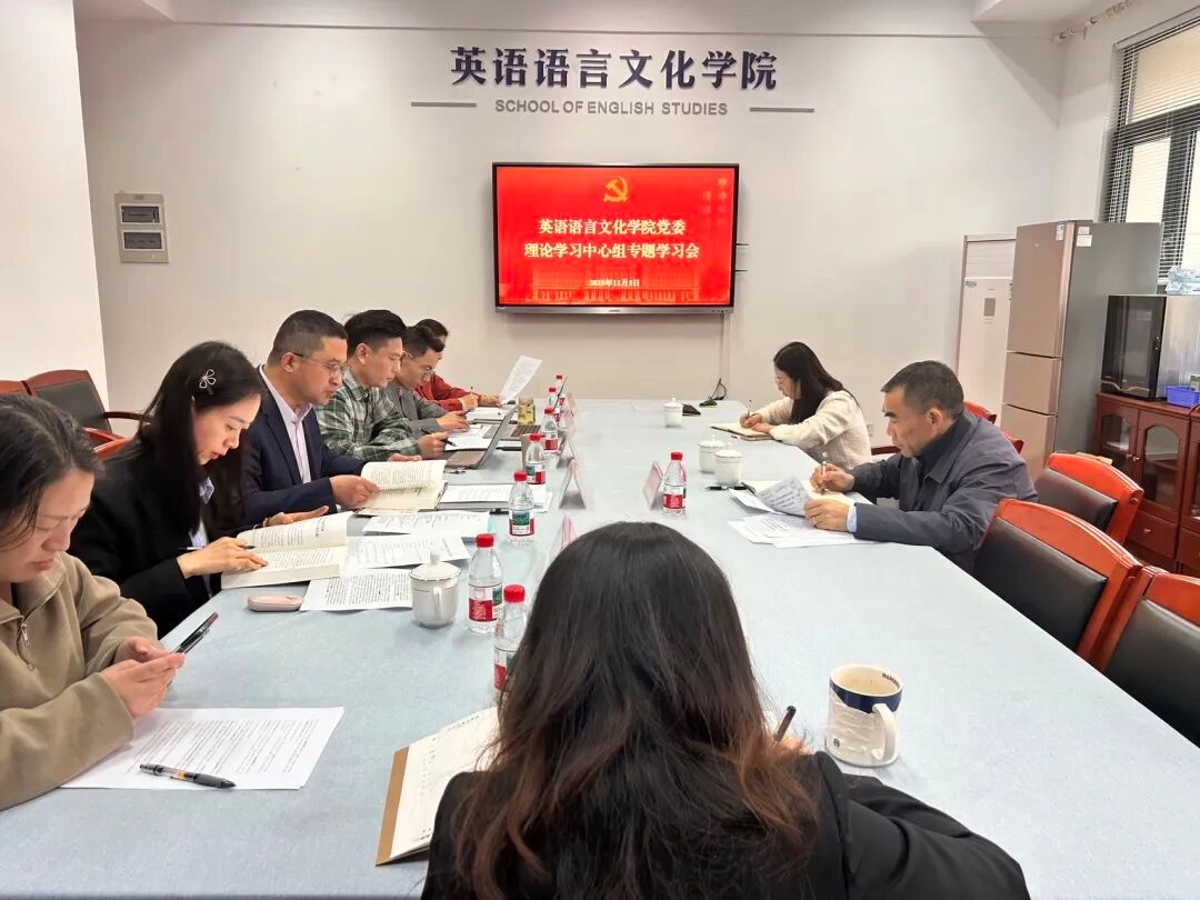 11月5日,英文学院党委理论学习中心组召开专题学习会,专题学习《习近平谈治国理政》第五卷和党的二十届四中全会精神。校党委副书记严齐斌到会巡听旁听,英文学院院长邢富坤主持会议。