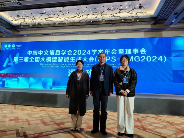 11月28日至12月1日,英文学院院长邢富坤教授带领21级英语(师范)专业的付少碟、罗佳怡两位同学参加了第三届全国大模型智能生成大会(CIPS-LMG 2024)。会议期间,邢富坤教授还参加了中文信息学会大模型与生成专委会会议。