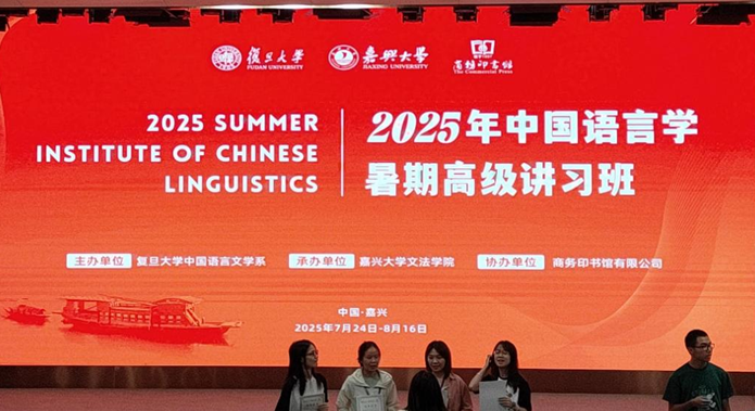 8月6日至17日,英文学院李悦园副教授参加了2025年中国语言学暑期高级讲习班第二段课程的学习。本届讲习班由复旦大学中国语言文学系主办,嘉兴大学文法学院协办,聚焦语言类型学与演化领域,邀请相关专家开展了为期12天的学术研讨活动。讲习班内容丰富多元、深度与广度兼具,为参会者搭建了一个高水准的学术交流平台。