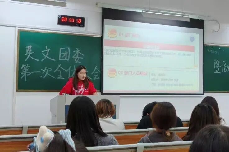 委员会,并通过组织架构图的展示,帮助大一新生快速建立对英文学院团委的整体认知,为后续工作奠定了良好基础。