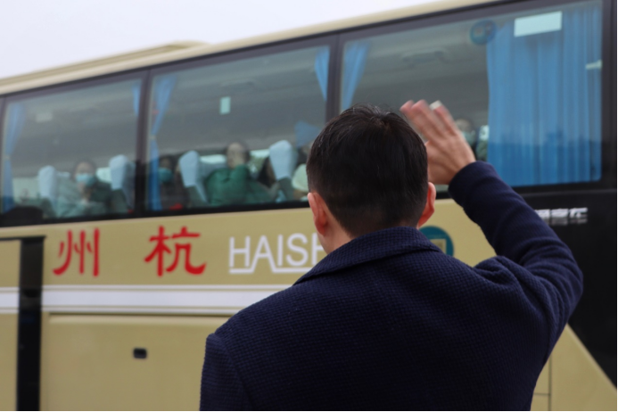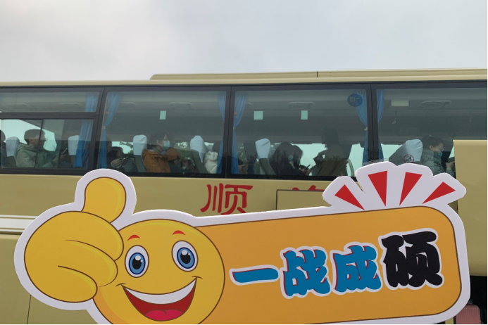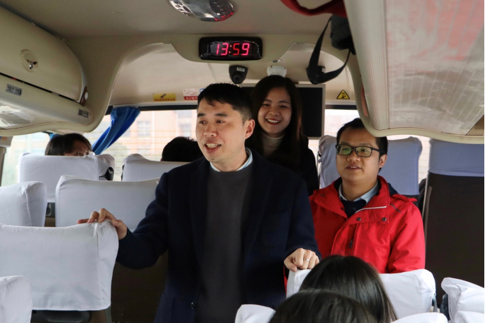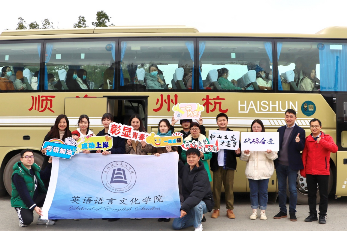 24日中午,英文学院54名考生乘上学院准备的送考大巴前往考点,学院领导班子、毕业班班主任、学生辅导员以及学生代表来到现场为考生们加油助威。