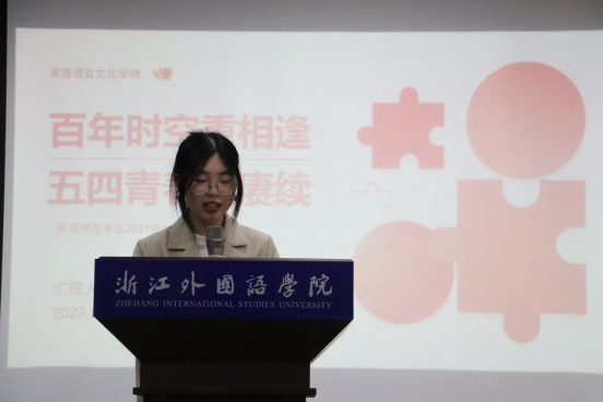 “我仰望你看过的星空,穿过百年时空再相逢。”2023年,21英师4班团支部在大赛中对自身团支部建设进行了全面而生动的阐述,并为我们带来建党百年版《错位时空》合唱。动人的歌声展现着同学们真挚的情感、蓬勃的朝气。班级团支书陶颖向大家分享了比赛的一系列前期准备,从班干部们的出谋划策,到每一位同学的积极配合,鼓励大家劲要往一处使。