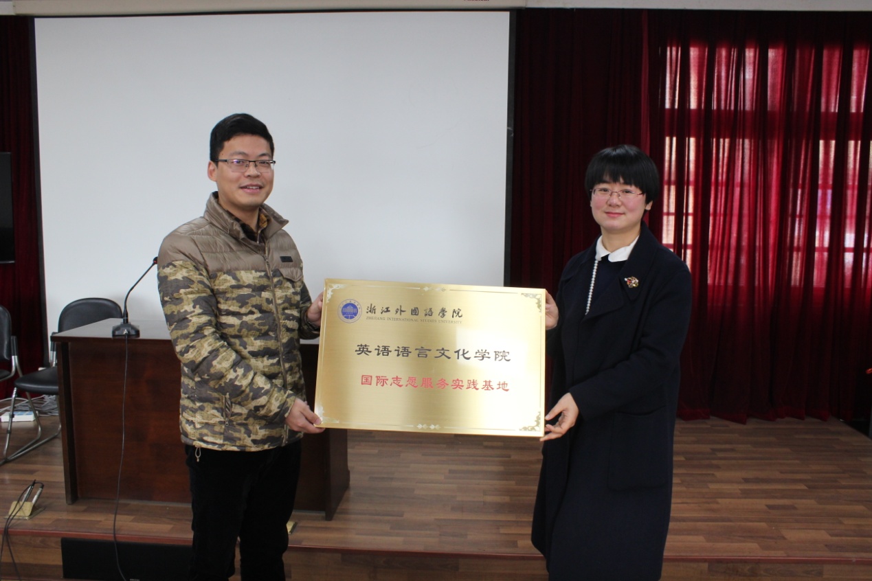 在授牌仪式上,杭州上城区风景旅游局团委书记陈婷详细介绍了上城区志愿服务的整体理念以及志愿服务的领域,表示希望借助英文学院志愿者的专业优势和国际礼仪特长,协助其实现玉皇山南基金小镇和景区国际体验日接待礼仪国际化、景区沟通咨询零障碍、景区英语指示标识标准化。