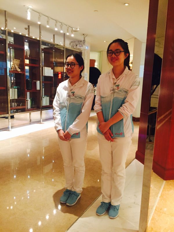 我们接触最多的是同学老师,由于专业关系同学都是来自浙江省。在酒店在管家中心我们遇到来自五湖四海的同事,管家部领班秘书、主管、经理、各部门主管、工程部师傅、餐厅送餐员、送报纸的小哥还有各楼层打扫卫生的阿姨、楼层领班。也因为在管家部我们遇到了来自G20成员国、各组织的贵宾。我们用我们的青春和活力融入他们,他们用他们的热情和关怀温暖着我们。在处理紧急情况,如何汇报、向谁汇报、如何解决、如何跟踪回访,以及如何在团队人员众多的情况下,协调好工作分配点点滴滴,也许我们说不出来,但我相信无论是眼界还是格局都慢慢融入到我们的生命里。我们学会了更好的团队合作,更好地融入新环境。