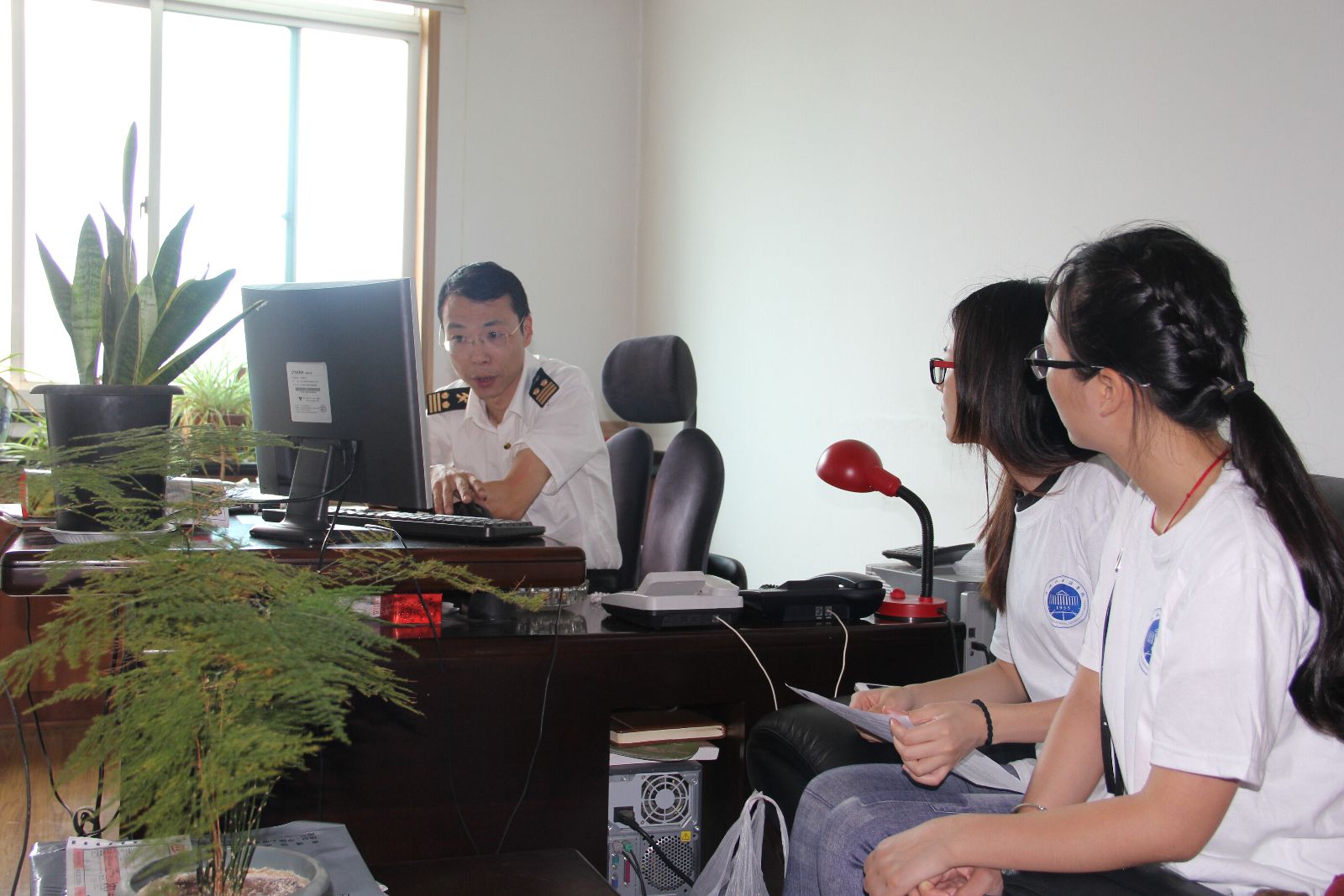 首先到达的是湖州日报和湖州海关。作为消息的集结地,湖州日报提供了一系列中国以及湖州当地贸易的信息供小分队参考。一位湖州日报的记者在了解调研活动后热情并有见解地讲述了目前中国与加勒比地区贸易的态势。作为实践的第一站,小分队备受鼓舞,随即马不停蹄来到海关进行调研,受到了海关办公室主任热情招待。在详细介绍行程目的后,主任就当地贸易情况以及丝绸业的情况作了介绍。虽然湖州在加勒比地区的贸易甚少,主任仍尽可能提供了相关资料,为实践提供了支持和帮助。