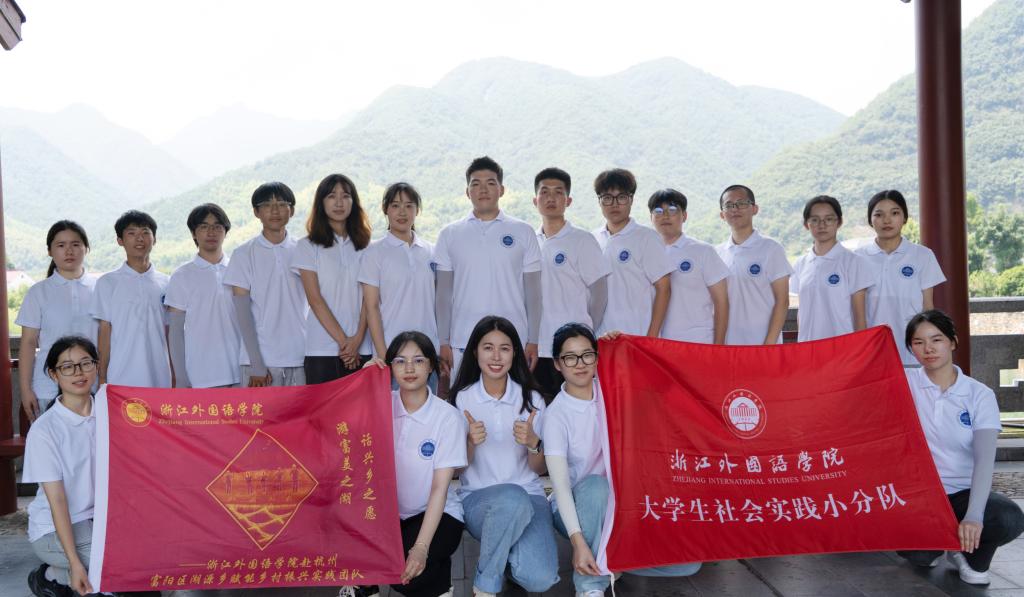 在浙江省“千万工程”在基层农村成功实施20周年的大背景下,为创新赋能乡村振兴、践行青年力量,全面推动乡村振兴高质量发展,英文学院“赋能乡村振兴”暑期社会实践小分队赴杭州富阳区湖源乡开展实践调研活动,发挥专业优势,助力湖源乡“外语+”文旅产业发展。