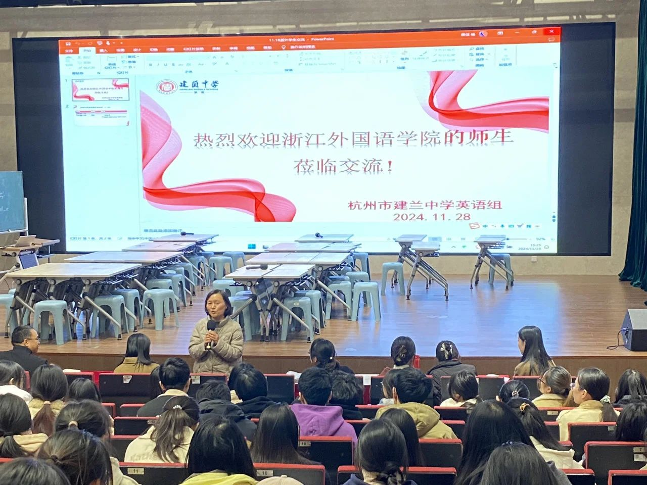 近日,英文学院英语师范专业教师童红灯、韩丹、杜娟娟、白天依带领奔专业2022级逾一百五十名学生,走进杭州建兰中学,开启本学期的英语师范专业教育见习实践周参访活动。此次参访活动旨在让学生们走进见习国产av