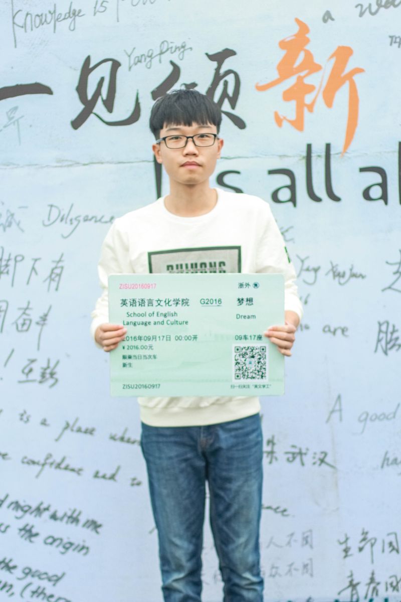 “欢迎乘坐梦想号列车,希望你带着老师们的寄语开始精彩的大学生活哦!”