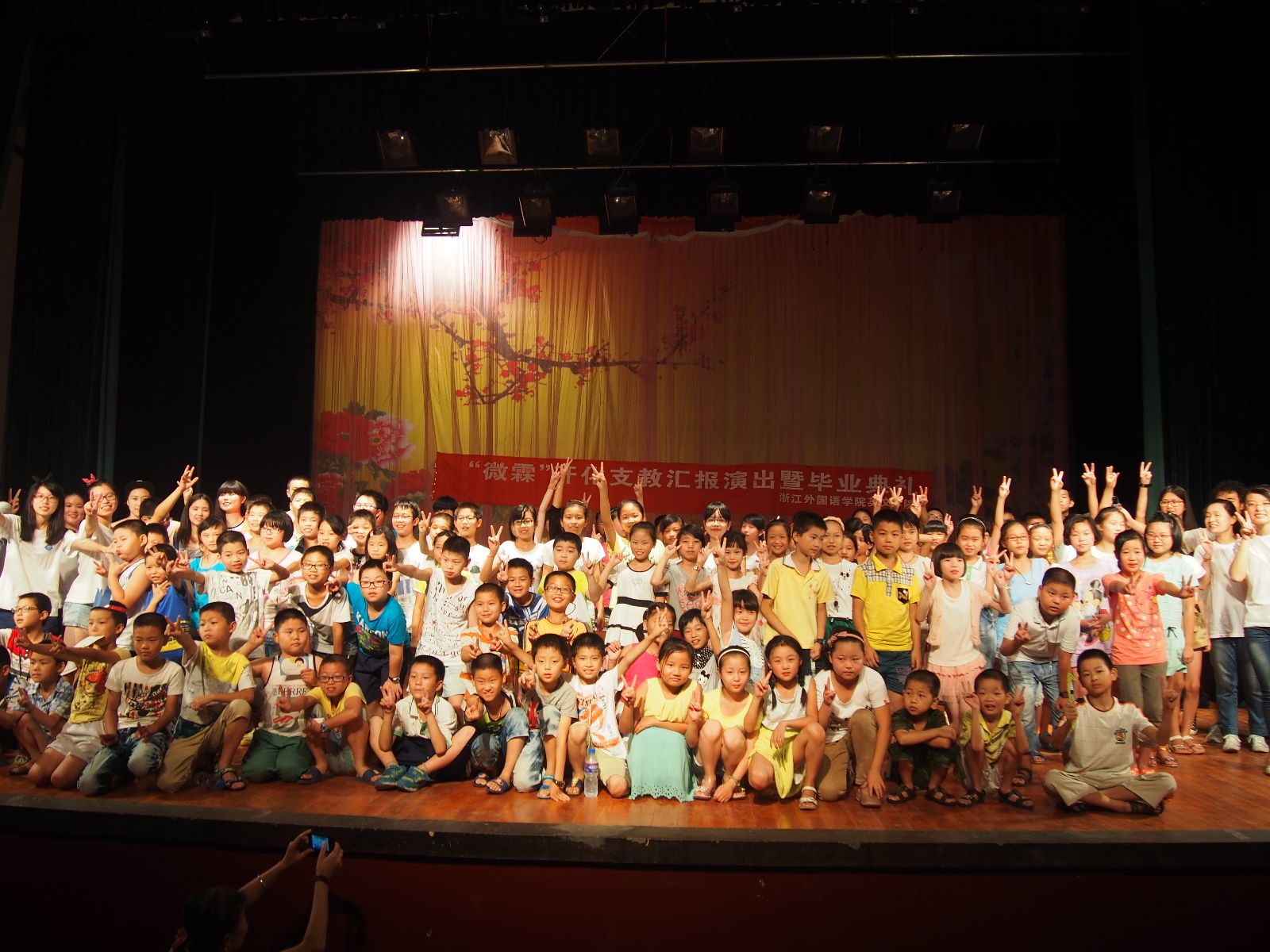最后一天,“微霖”英语支教汇报演出暨毕业典礼在镇文化中心举行。整个礼堂被村民挤得满满当当。孩子们个个精神抖擞,将平日精心演练的英语舞台剧和英语朗诵搬上了舞台,赢得了观众的阵阵喝彩。这不仅是本次支教活动的成果展示,更为孩子们提供了一个自我展现的舞台。至此,支教活动画上了一个完美的句号。孩子和家长们的一句句“明年再来”是对微霖团队最好的肯定。