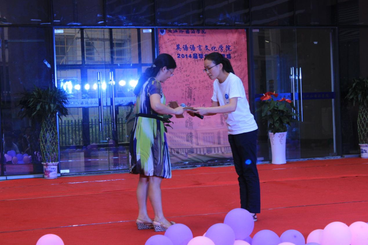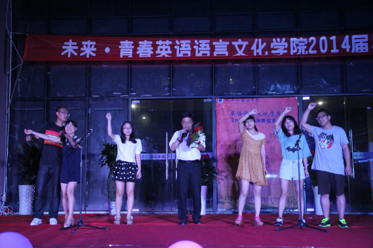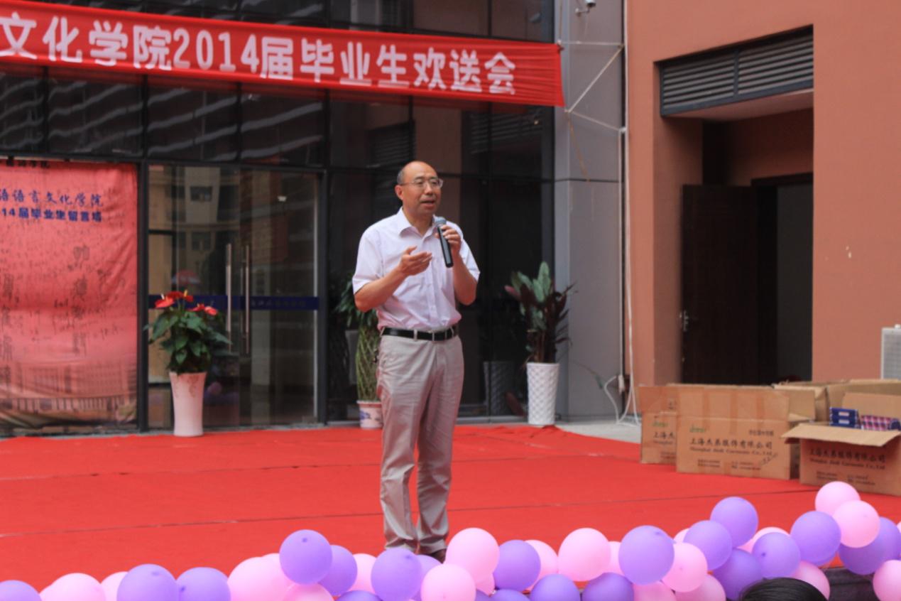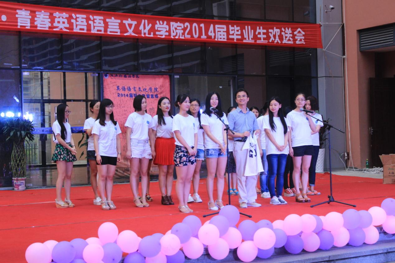 2014届毕业生欢送会的现场。校党委副书记赵伐、英文学院负责人、专业教师、辅导员、班主任和英文学子参加了本次欢送会。