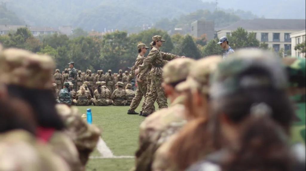 教官的喊声回荡在同学们的耳畔。大家眼神坚毅,英姿飒爽、挺拔如松。因为回家的目标在心中闪耀。