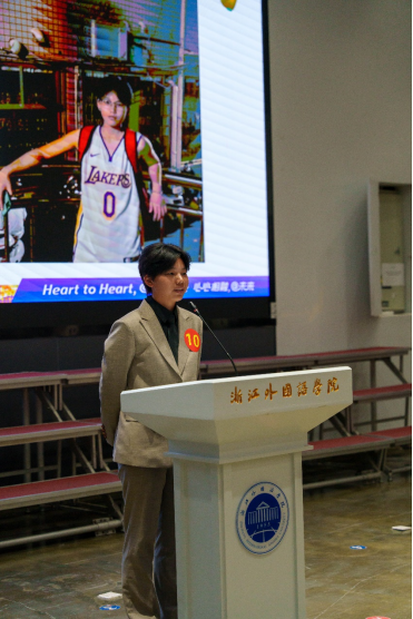 本次决赛分为三分钟英文主题演讲和两分钟中文即兴演讲两个部分,英文演讲主题为“City of the Games, Windows of the World”,中文即兴演讲题目由选手们现场抽取,围绕时政热点展开。