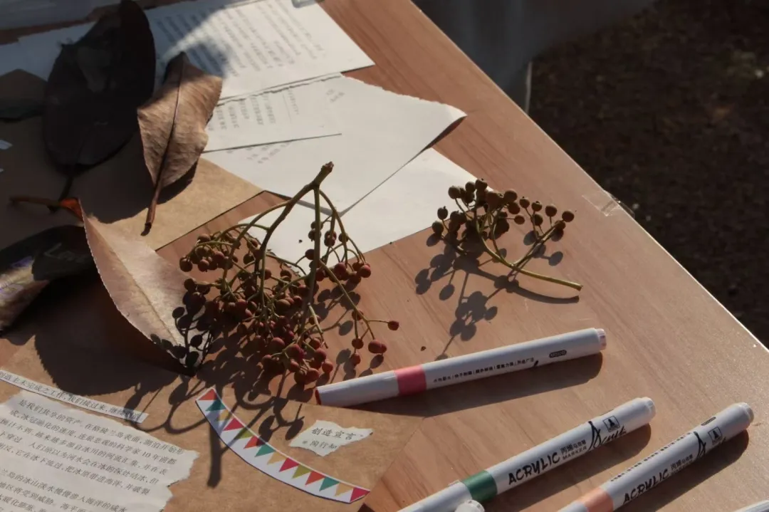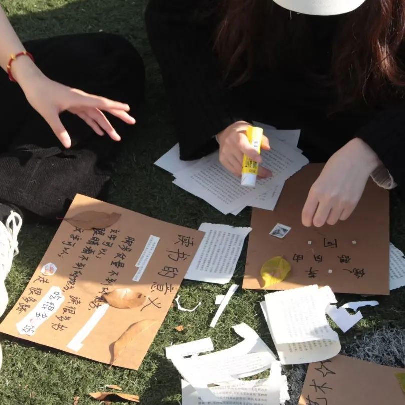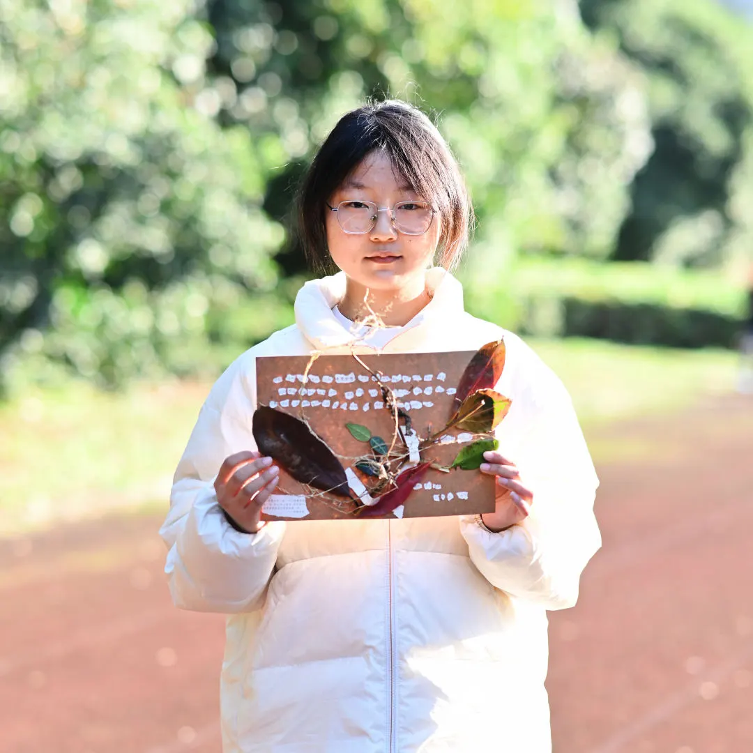 在这场别开生面的冬日拾叶中,同学们以文字为舟,搭载着内心的思绪遨游;以画笔为桨,描绘自己的情绪波澜;更以自然为镜,透过落叶的脉络感知季节的更迭与情感的流转。活动不仅缓解了期末临近的紧张氛围,更帮助同学们在温馨的互动中过渡到这个渐显寒意的季节。