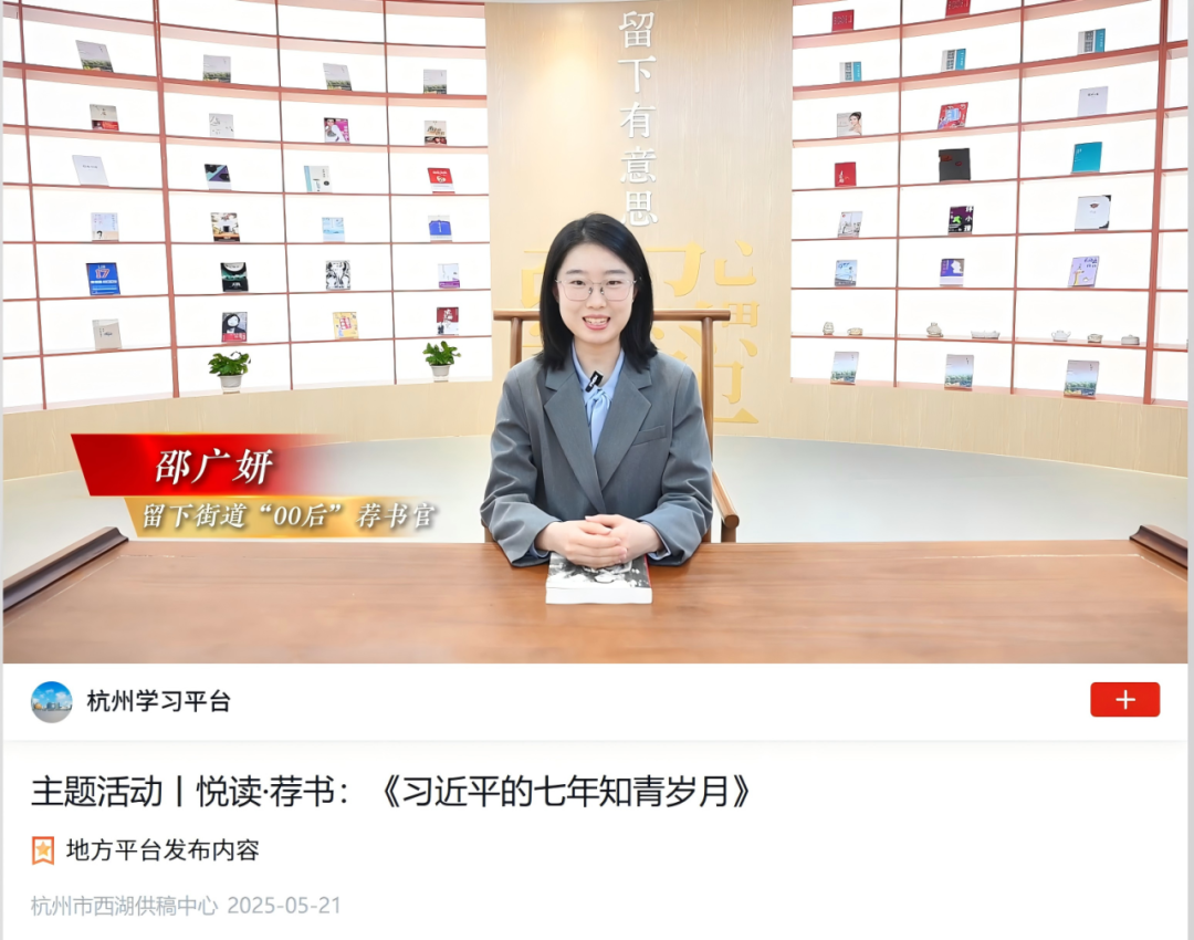 “青年学子学青年习近平”学习教育的影响下,她认真研读《习近平的七年知青岁月》,结合书中蕴含的艰苦奋斗精神与她的专业学习、日常生活展开思考,在学习强国平台发表3篇征文、1则荐书视频和1则理论宣讲视频,累计浏览量超3.3万,展现出知行并进的成长风貌。