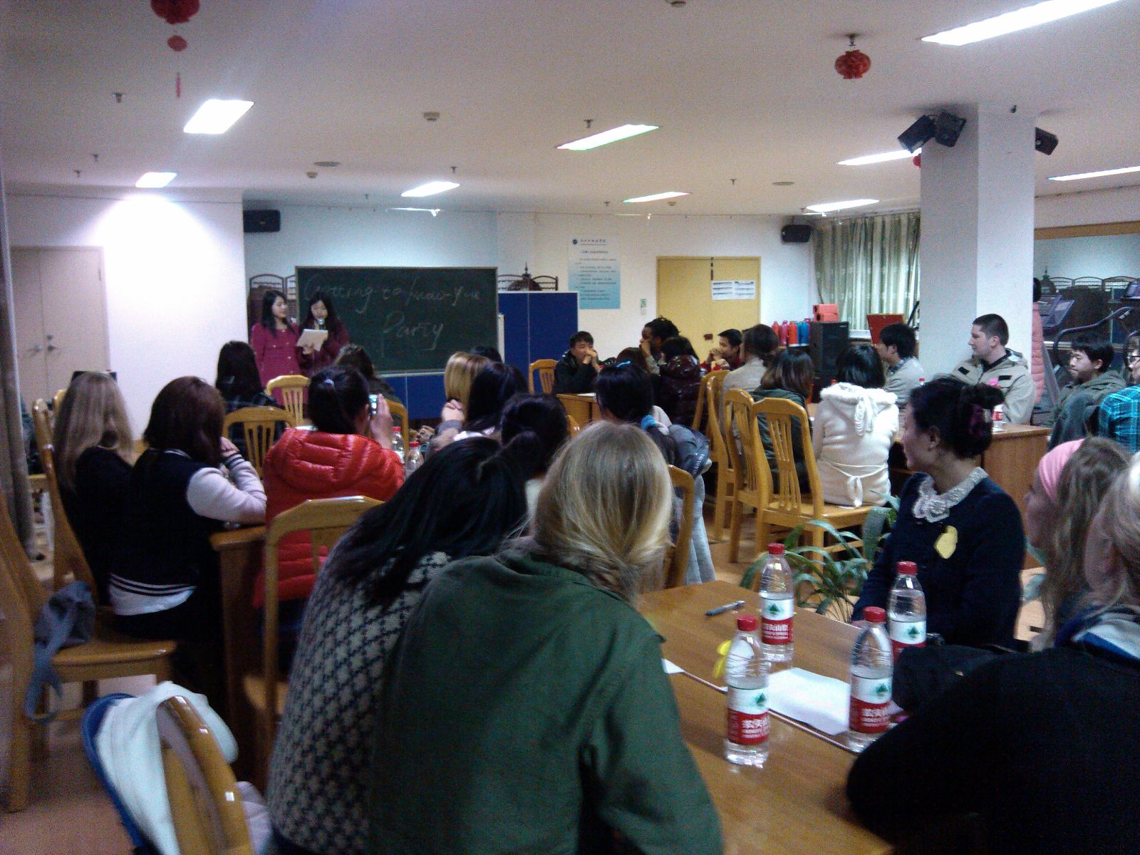 见面会上,中美两国学生通过创新版“击鼓传花”、中文报数等游戏,骑马舞、Hip-Hop、古诗朗诵等精彩表演增进了彼此的了解,顺利完成结对。在接下来的两个多月时间里,中美两国学生将“同住一栋楼”、“同上一堂课”,相信双方在专业学习、跨文化沟通能力等方面将取得共同进步。