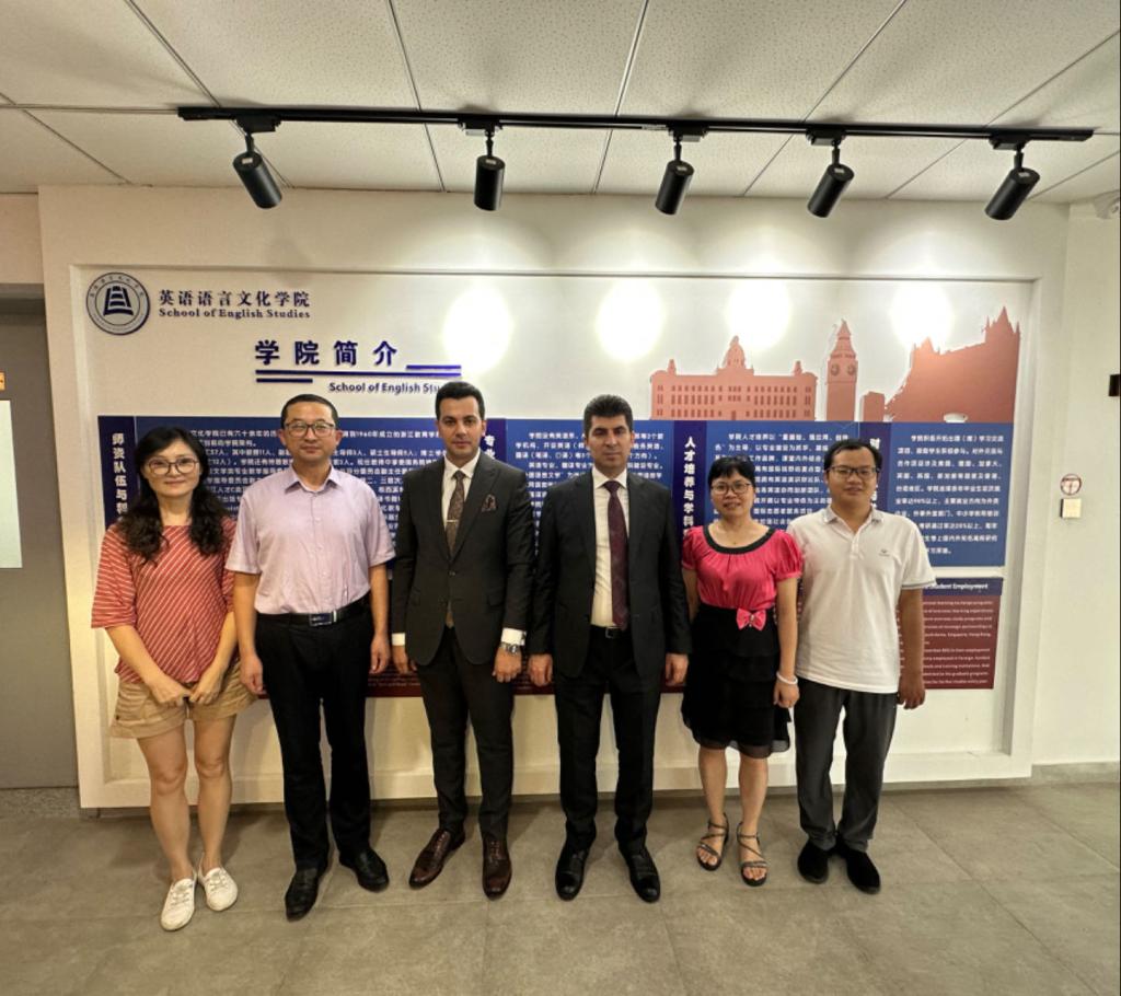 伊拉克新汉大学代表参观了英文学院文化空间、教学设施和办公场所,深入了解学院办学历史、师资队伍和学生发展情况等。