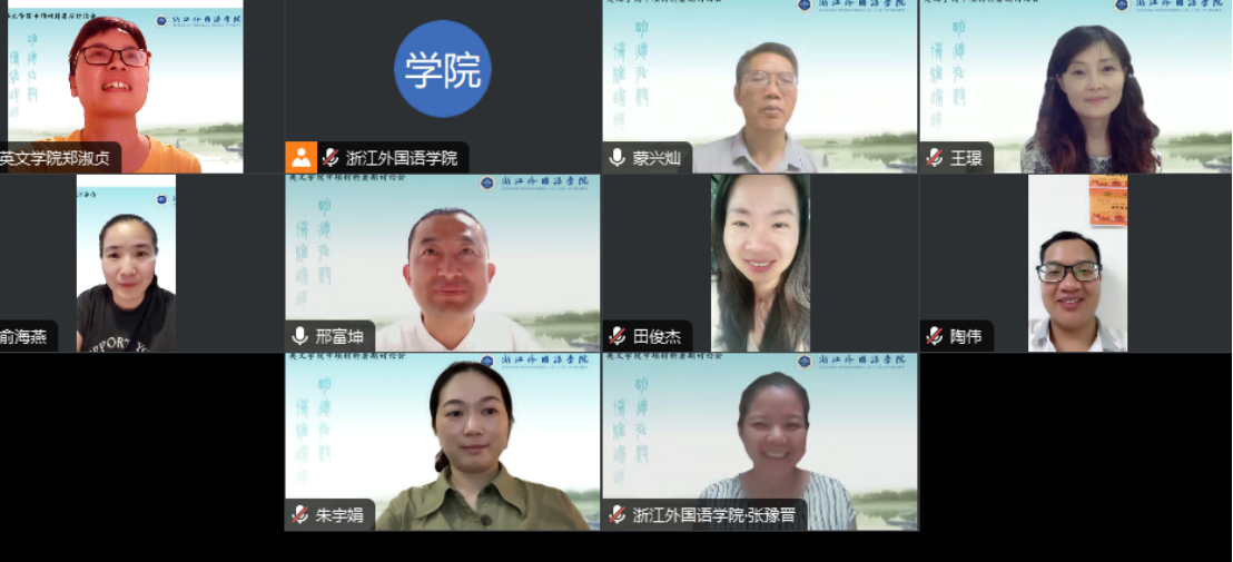 8月8日,英文学院召开申硕材料暑期讨论会。院长邢富坤,党总支书记田俊杰,副院长郑淑贞、陶伟,副书记张豫晋,申硕工作专家组组长蒙兴灿,申硕工作领导小组成员、翻译系主任王璟等参加会议。会议由郑淑贞主持。
