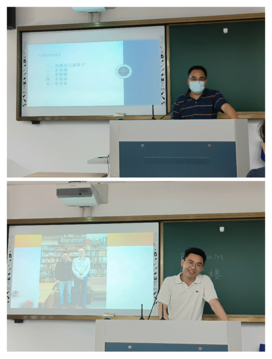 会上,学院英语系童红灯老师作为校级优秀班主任代表,分享了自己的工作经验和心得体会,他表示要爱生如子,通过“多见面,多鼓励,多指导,多分享”这“四多”建立学生对班主任的信任感、对自己的自信心和对人才市场的竞争力。