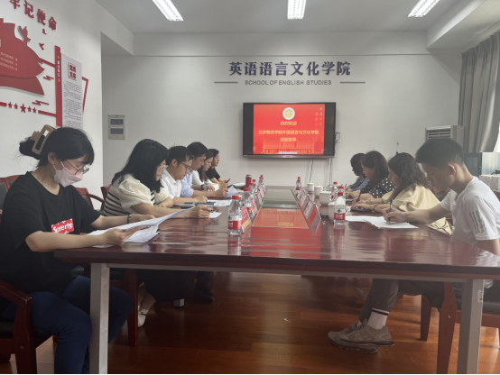 近日,北京物资学院外国语言与文化学院院长王淑花等一行4人来英文学院调研交流。英文学院党总支书记毛立峰、副院长陶伟、副书记张豫晋、商务英语系主任陆海霞,以及应用外语学院语言测评系副主任李玲玲、通用英语系副主任袁艺蕾参加。