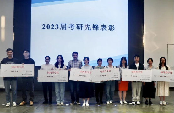 为促进学院学风建设,充分调动学生升学积极性,提高升学质量,5月15日晚,英文学院在望C-116召开了2023年升学表彰大会暨2024届升学动员大会。学院党政领导班子、系主任、辅导员、2023届升学先锋以及2024届学生代表参加会议。