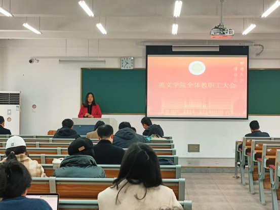 召开全体教职工大会。会议由学院党总支书记毛立峰主持,学院全体教职工共同参与。