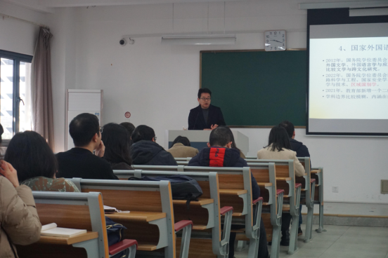 叶狂以“有信心、知不足、有规划”为题,围绕外国语言文学一流学科建设、2022年英文学院成果总结、2023年学院发展任务、当前面临的问题、个人发展规划建议等五个方面对2023年学院总体工作进行安排部署。他表示,要通过守正固本、交叉创新、学院协同、多语种联合方式推进外国语言文学一流学科建设;通过总结学院2022年在教学、科研及人才培养取得的成绩,以及分析存在问题;从学科建设、组织制度、队伍建设、文化氛围、对外联系等方面谋划了学院2023年发展任务。此外,他传达了国产av