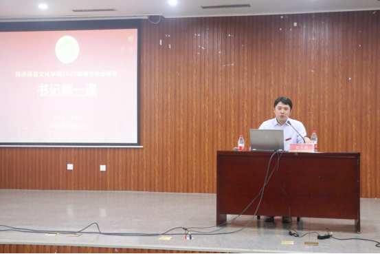 为帮助2022级新生更好地适应大学生活,扣好人生第一粒扣子,更好地适应大学环境,尽快明确专业定位,做好未来发展规划,英文学院党总支书记和院长分别为新生开展始业教育。