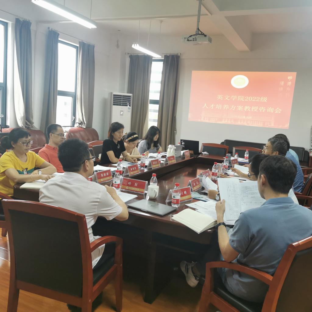 9月15日下午,英文学院召开了2022级人才培养方案教授咨询会,学院领导班子、系主任和教授代表蒙兴灿、杨平、谢朝群、邢富坤等参加会议,会议由陶伟副院长主持。
