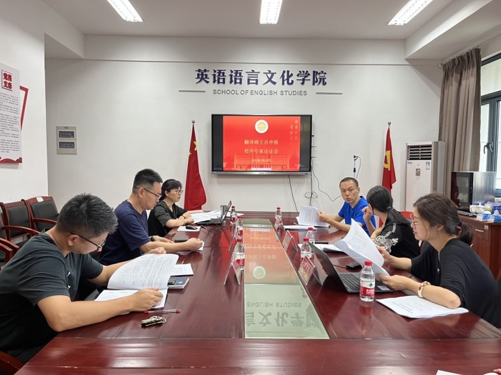 7月22日,英文学院牵头召开翻译硕士申报校内专家评审会,英文学院院长叶狂、东语学院院长吴玲,东语学院副院长曹笑笑、西语学院副院长张禄彭、应外学院副院长王昊等参加了讨论会。会议由英文学院副院长郑淑贞主持。