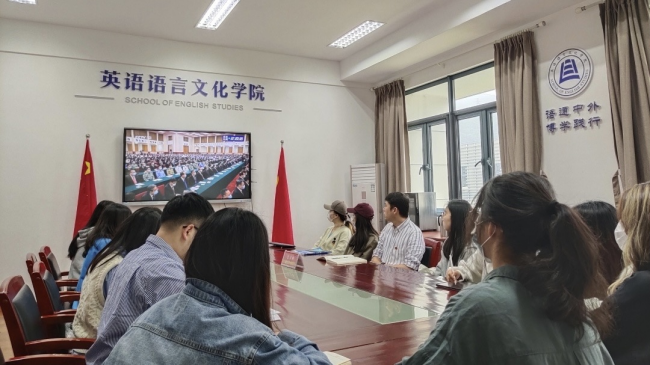 英文学院师生代表集中观看了庆祝中国共产主义青年团成立100周年大会实况直播,深入学习习近平总书记重要讲话精神。青年师生纷纷表示:要坚定理想信念,勇担历史使命,成长为有理想、敢担当、能吃苦、肯奋斗的新时代好青年,在今后的工作和学习中牢记习近平总书记的殷殷嘱托,在实现中华民族伟大复兴的征程上激扬青春,奋勇前进。