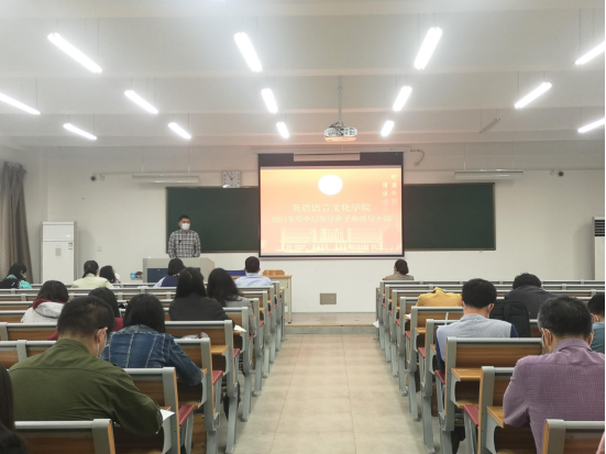 陶伟从毕业论文、教材审核、课程建设、教学制度、教师资格证考试、人才培养方案修订、师范专业认证整改、英语专业四级考试辅导等方面对近期教学工作进行了安排部署,并鼓励全体教师积极申报各类教学项目,主动开展课堂教学创新。